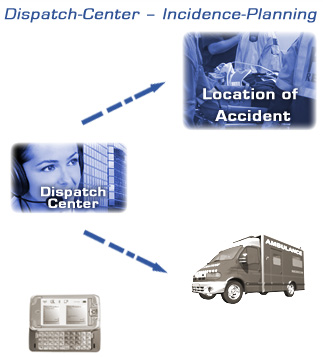 - The Dispatch-Center selects for the right rescue ressource supported by the rescue-application and informs the ressource via phone, radio or Web 2.0 online.